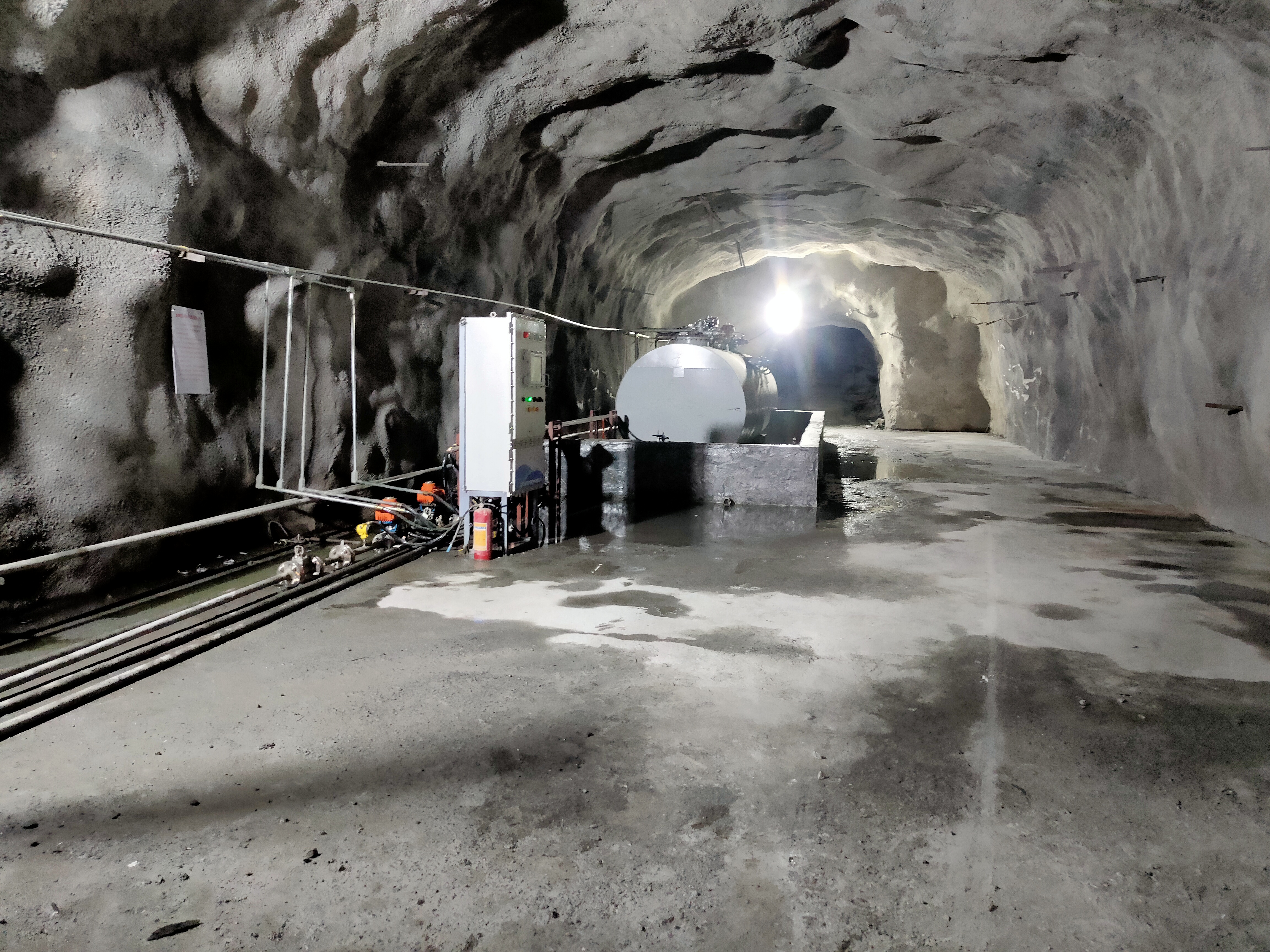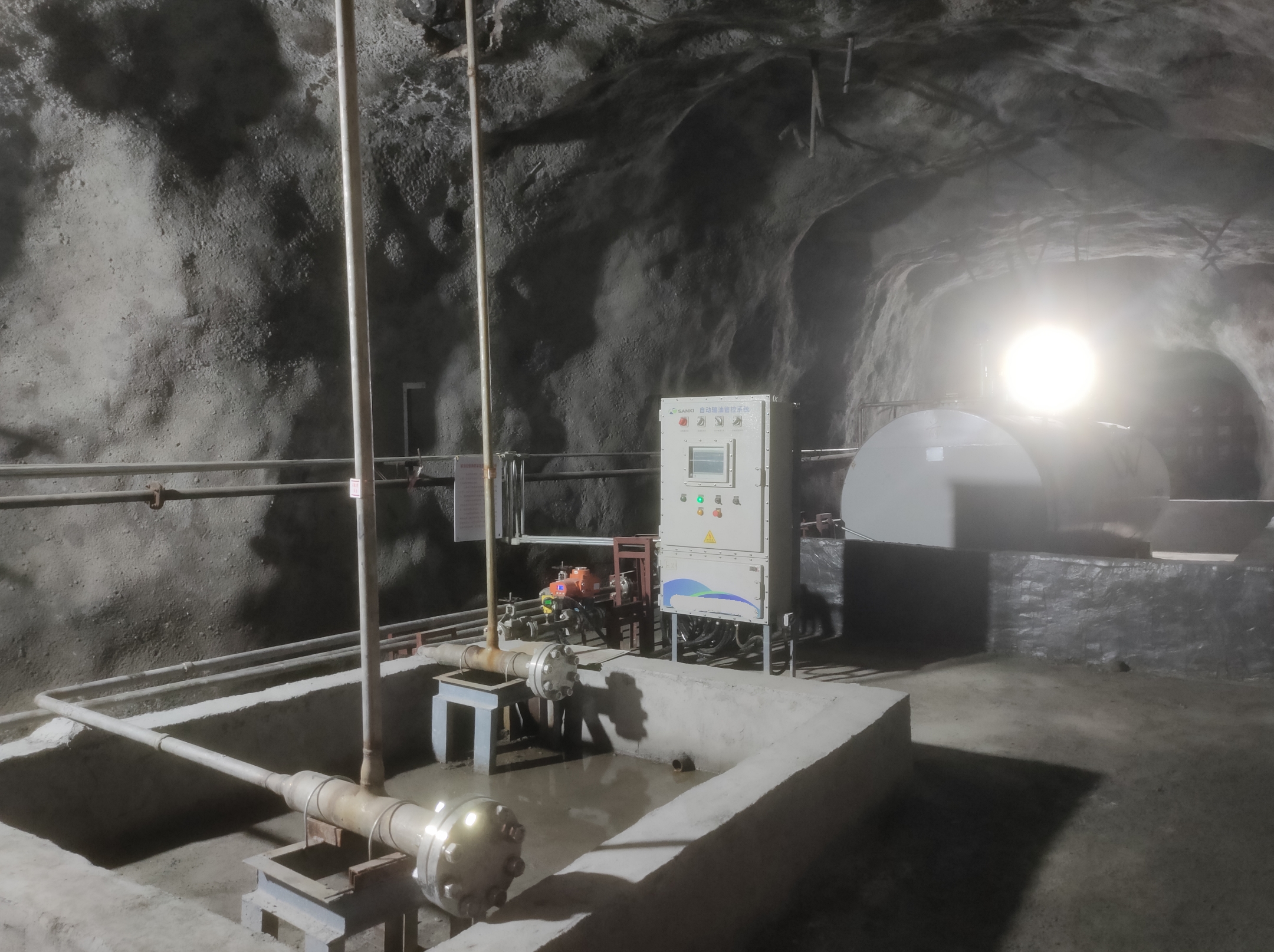 凡口鉛鋅礦井下680米智能供油系統(tǒng) 目前正有序施工中, 預計9月底完工并投入使用。該項目為全國首創(chuàng), 由韶關企業(yè)進行技術攻堅 并申請多項國家專利, 擬申報吉尼斯世界紀錄 “全球最深的智能供油系統(tǒng)”。 凡口鉛鋅礦井下智能供油系統(tǒng) 需在地面設置橇裝加油裝置, 并分別在地下 330米、480米和680米處 建設智能化供油系統(tǒng), 通過鉆孔鋪設輸油管線, 將油品從地面輸送到井下。 地下330米智能加油點, 目前已進入收尾階段, 現(xiàn)場有兩根 從地面裝置接下來的輸油管, 用于工程車加油, 另一邊也有兩根輸油管輸送到 地下480米和680米的智能加油點。 別看油管很細,鉆孔不大, 但施工難度并不小, 全長3千多米的輸油管, 垂直打孔偏差不能超過1米。 作為亞洲最大的 單體鉛鋅銀礦生產(chǎn)基地, 凡口鉛鋅礦 有井下工程車輛和設備100多臺, 井下用油量大。 井下智能化供油系統(tǒng)啟用后, 不僅解決井下用油安全、環(huán)保風險, 同時降低生產(chǎn)用油成本, 推進凡口鉛鋅礦建設智能化礦山, 實現(xiàn)“無人開采”。 如果鉆孔偏差太大,就找不到鉆下來的孔,影響輸油管道的布設,增大成本。3千多米有5千多個焊接點,所有的焊接口都要達到高壓管道的焊接要求,這個項目是全國首創(chuàng),在全國所有礦山企業(yè)中,我們是首次使用通過輸油管道往井下輸油,并且實現(xiàn)智能控制的方案。 這個月底把地下330米加油點完工,開始加油,9月底把底下480米和680米開通使用。希望通過這個項目打造創(chuàng)新科技的韶關樣板,把先進的經(jīng)驗和技術推廣到全省、全國乃至全球。